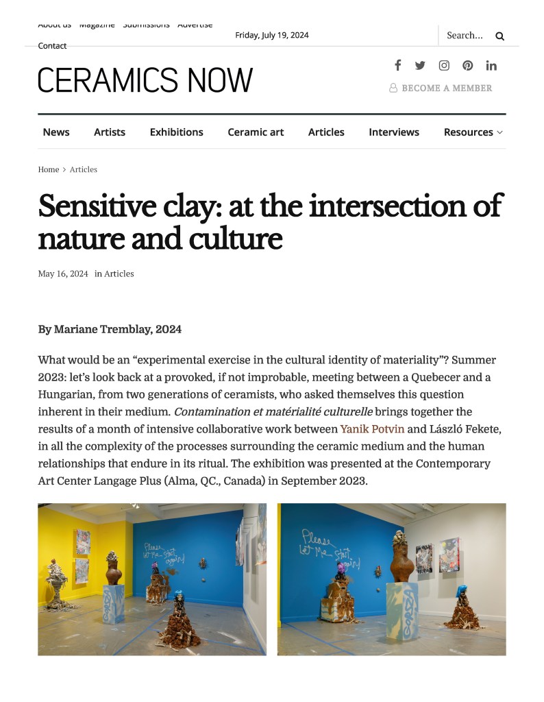 Sensitive clay: at the intersection of nature and culture (2024), Ceramics Now, périodique numérique (NY, États-Unis).