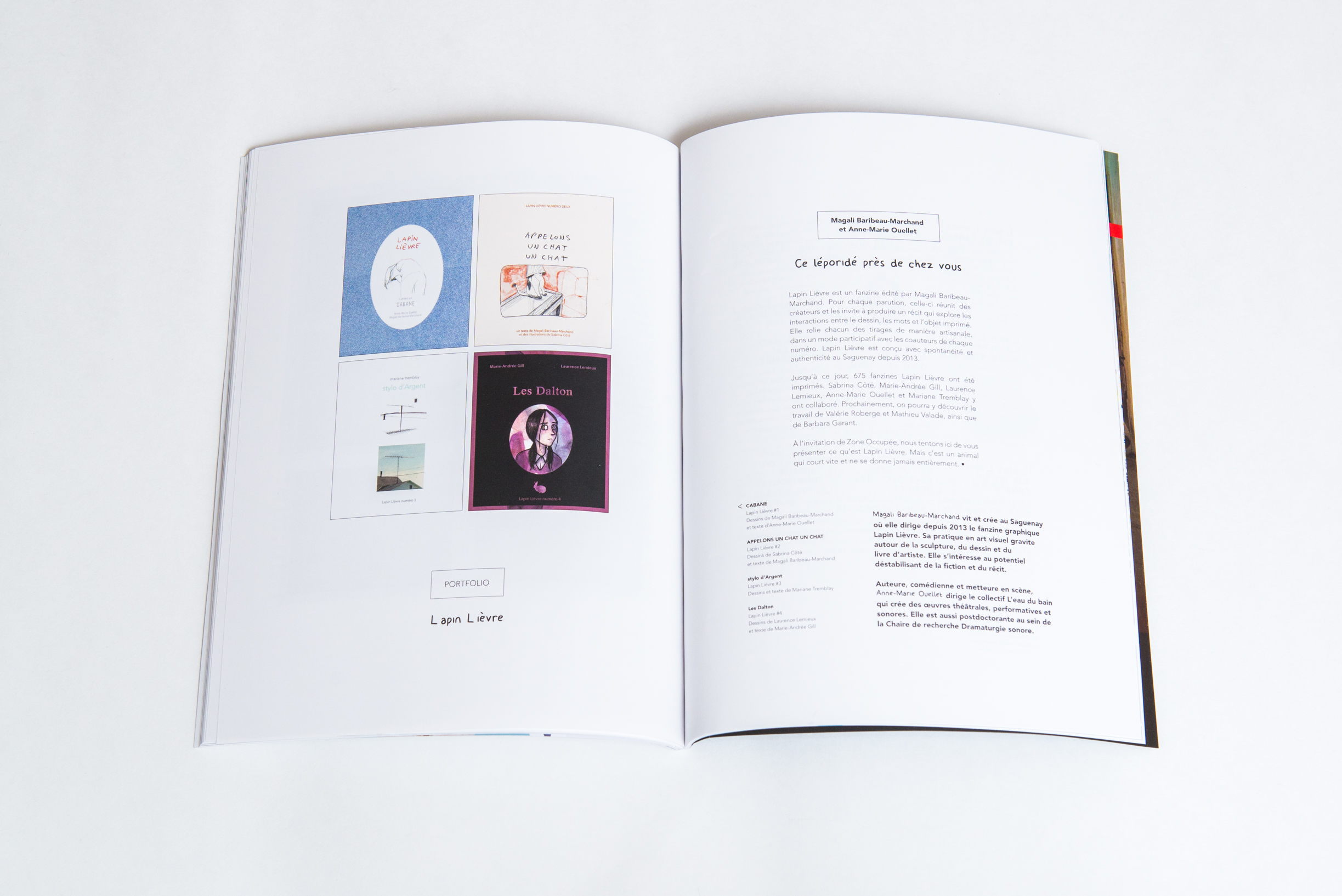 « Portfolio : Lapin Lièvre » par Magali B. Marchand et Anne-Marie Ouellet, revue Zone Occupée #8 : Inachevé, automne 2014