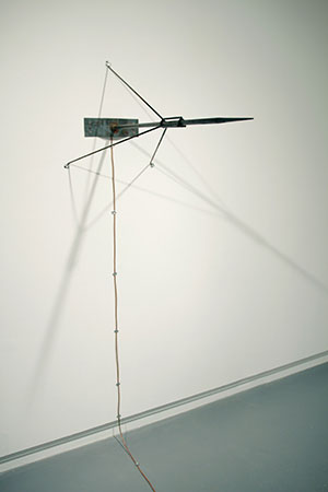 Cependant placés sur les plus hauts sommets de bâtiments, les paratonnerres apparaissent symboliquement comme les capteurs sensibles d’une activité céleste en devenant témoins de manifestations du merveilleux. Composée de deux capteurs pointés l’un envers l’autre dans un cycle électrique continu par un fil de mise à la terre, l’installation joue sur la crainte collective de l’orage, soulève l’idée du risque à travers la protection et crée une barrière invisible à traverser ou non.