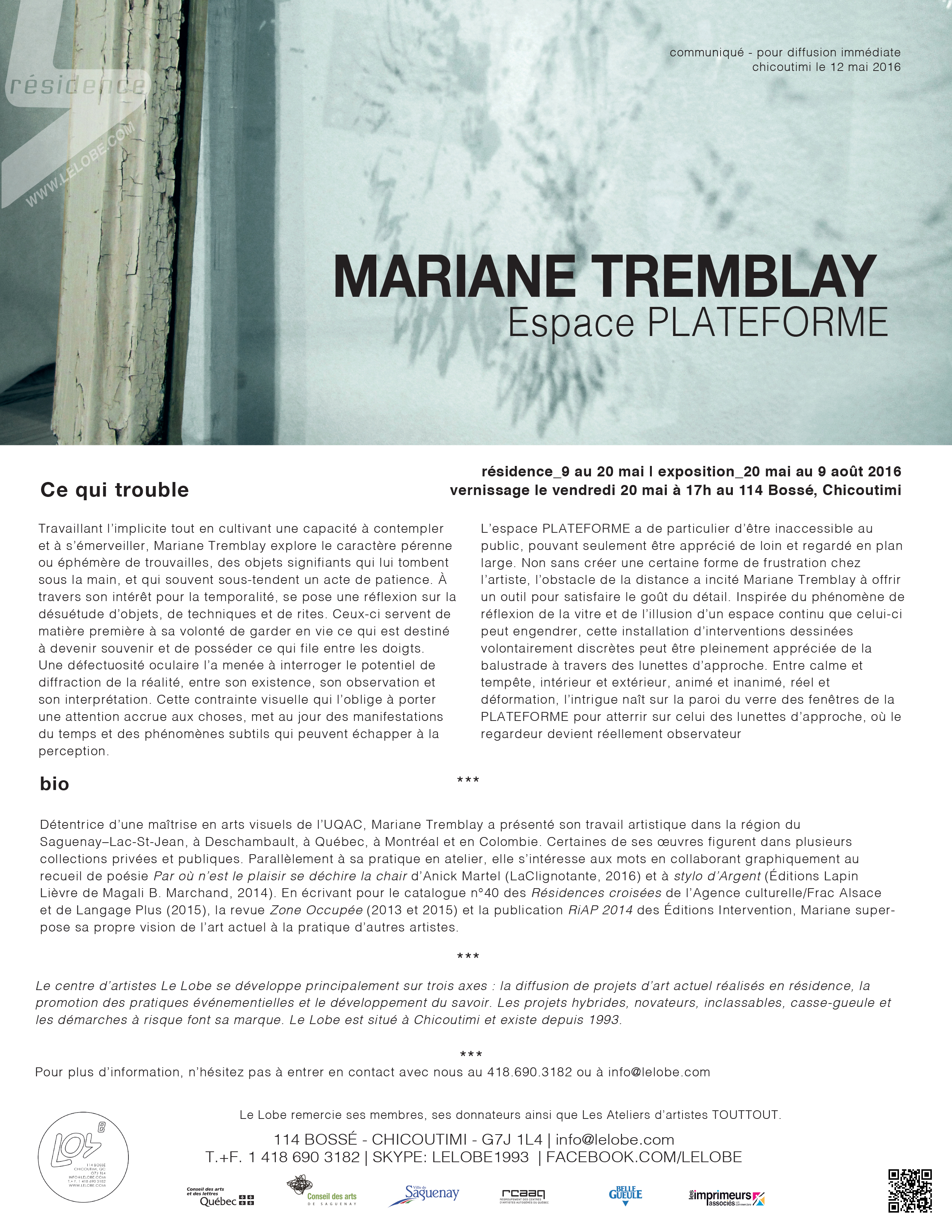 Espace Plateforme – LE LOBEEXPOSITION 20 mai au 9 août 2016