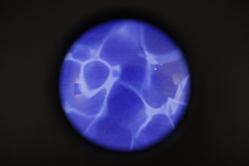 Lentilles convergentes, dessins au plomb et vinyle de piscine