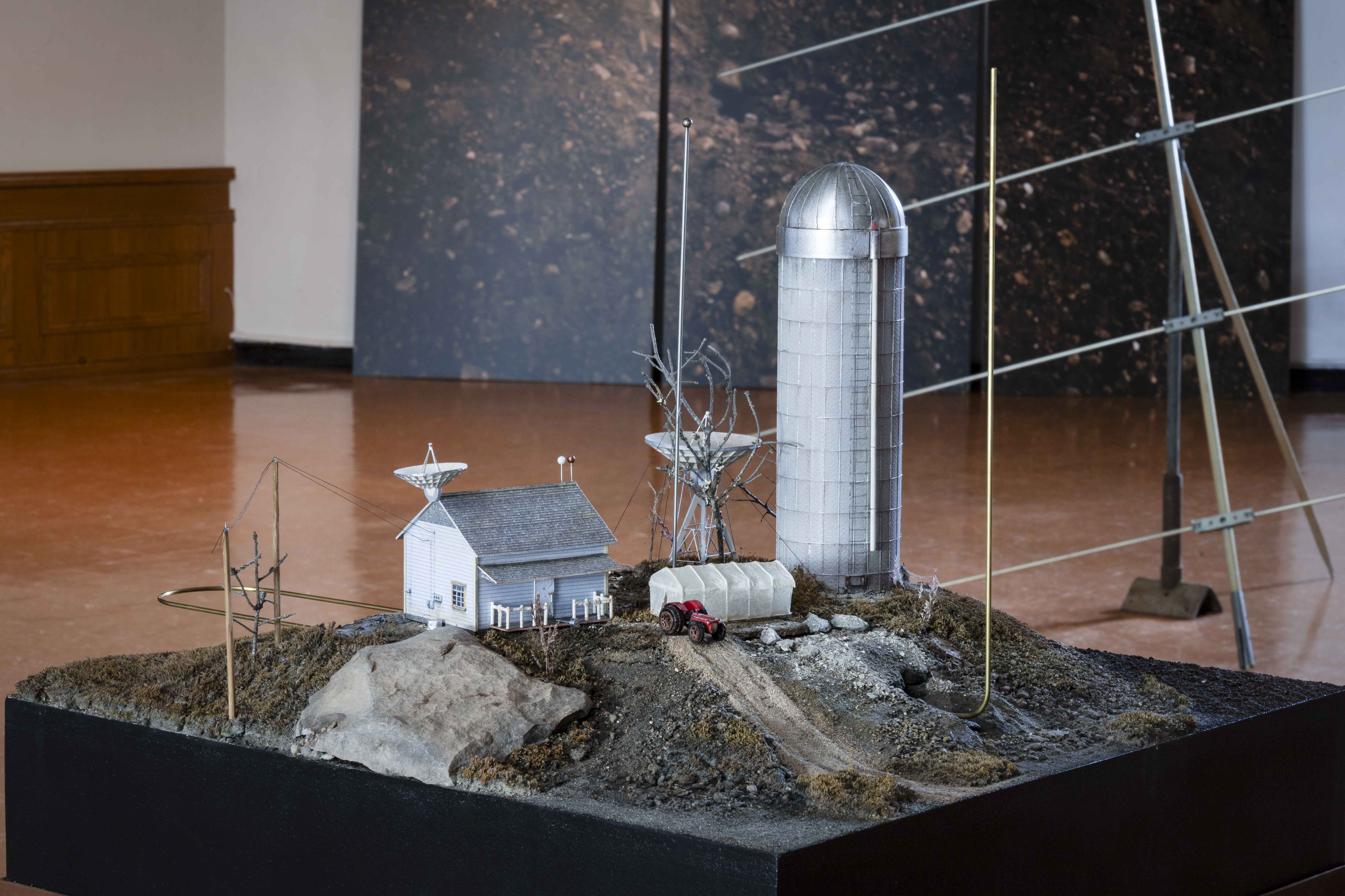 État Plasma fait référence à un état de la matière mystérieux et omniprésent dans l’univers, le plasma, qui se trouve entre autres dans l’ionosphère terrestre où il impacte la propagation des ondes radio. L’exposition propose de s’immerger dans un corpus rétrofuturiste, inspiré par les mystères d’une mission secrète américaine des années 1980 à Sainte-Hedwidge-de-Roberval, qui aurait créé un présumé trou béant dans l’ionosphère, semant le doute et la peur. Au moyen de composantes visuelles, sculpturales et sonores à la fois familières et énigmatiques, le projet associe avec poésie l’imaginaire scientifique à une expérience artistique de manipulation de l’invisible. Les artistes ont représenté cette expérience dissimulée sur une ferme banalisée, photographié des structures étranges érigées dans le paysage et enquêté le spectre électromagnétique de la petite municipalité du Saguenay–Lac-Saint-Jean.