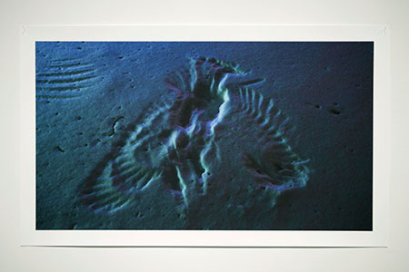 Ces traces d’oiseaux dans la neige ont été trouvées par hasard sous des conifères à la lueur de lumières de Noël confinant une ambiance magique aux scènes. En apparence mystérieuses et rares, ces apparitions éphémères suggèrent une mort en plein ciel, alors qu’il s’agit d’envolées d’oiseaux ayant passé la nuit dans la couche neigeuse.