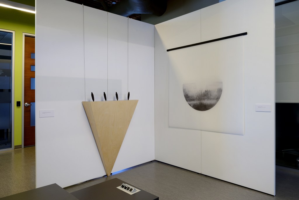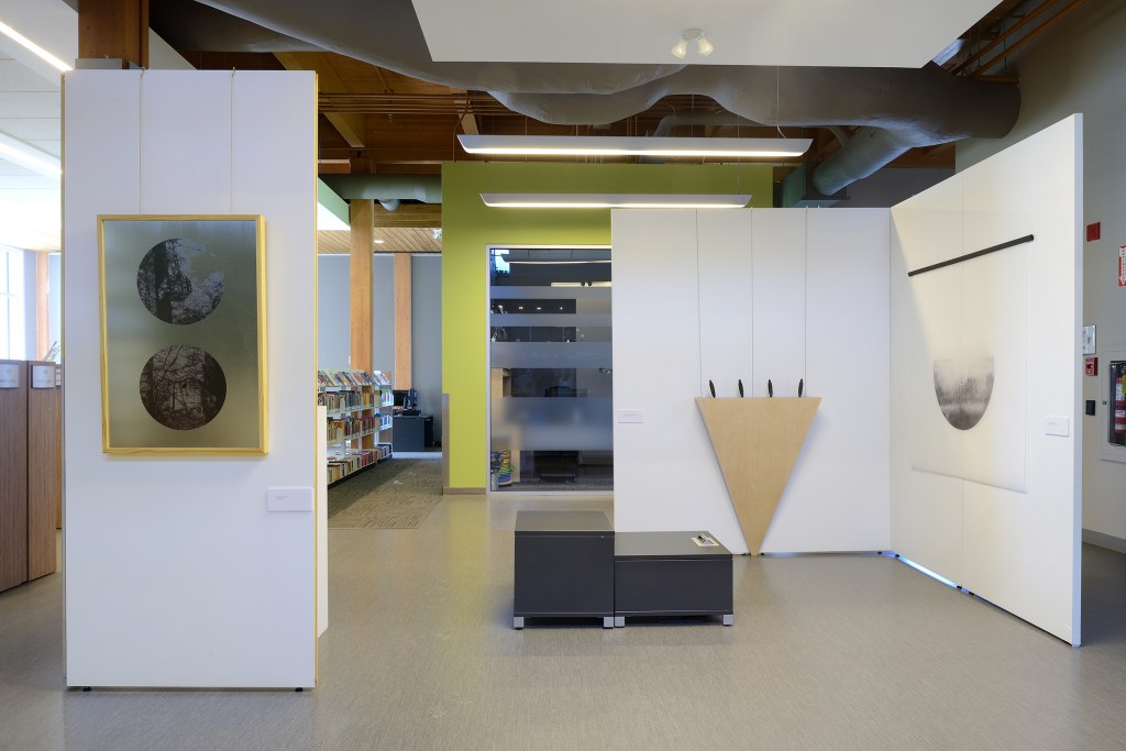 Les murs de l’ESPACE PARTAGÉ présentent des œuvres d’artistes visuels et en arts actuels, choisies par les organismes professionnels de Saguenay.